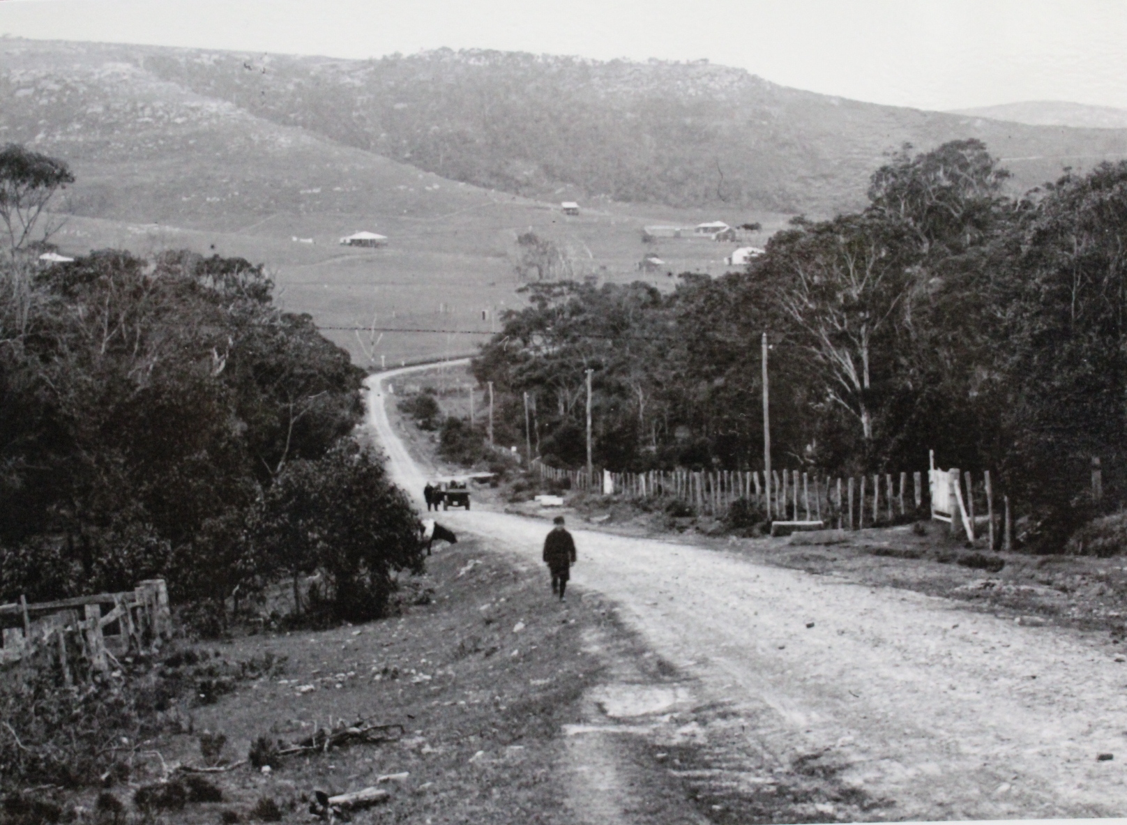 Heading north along Barrenjoey Road - this is the track leading down the hill with Newport hill in the background, circa 1915