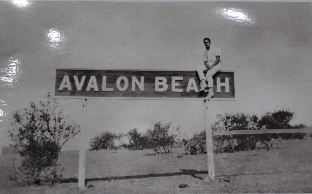 “See this photograph here of the Avalon Beach sign put up by A J Small in 1921 – well this is a photograph of a beach in which you cannot see the sea – see there’s no ‘c’ there.”