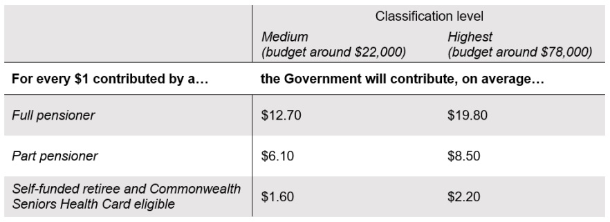 For every $1 an older Australian contributes, the Government will contribute an average of $3.30 to residential care, and $7.80 to Support at Home.