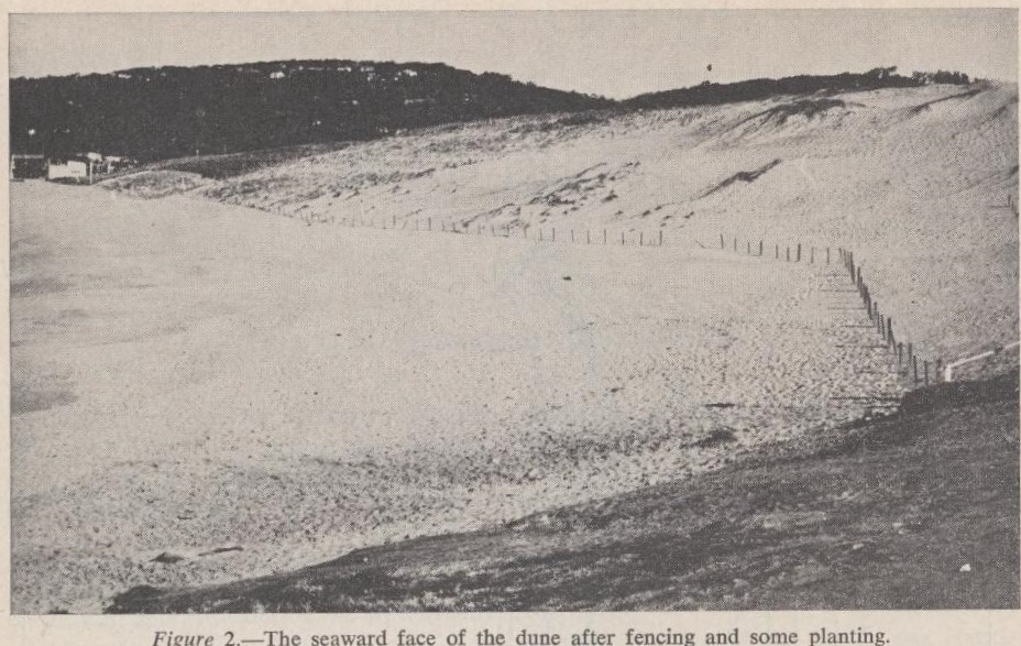 In addition sand spinifex is spreading naturally. Seedheads of this grass were planted in the summer of 1972-1973 on the lower seaward slopes of the dunes to ensure its spread into this important area.