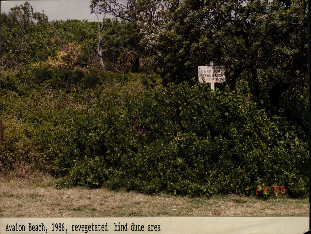 Avalon Beach, revegetated hind dune area, January 24th, 1986. Photo: Digital Image 400 - courtesy NSW DPI
