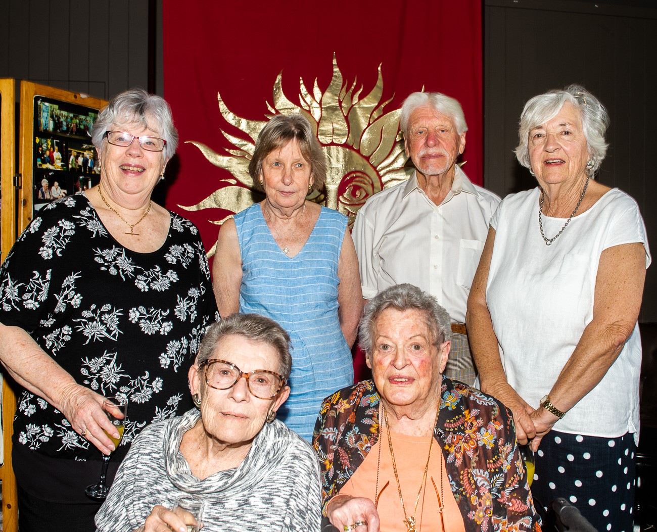 Avalon Craft Cottage 50th Luncheon: Robin Thomson, Nola Marshall, Lesley Warren, Jenny Fraser, Frank Wyld, Meg Sedgwick. Photo by Michael Mannington.