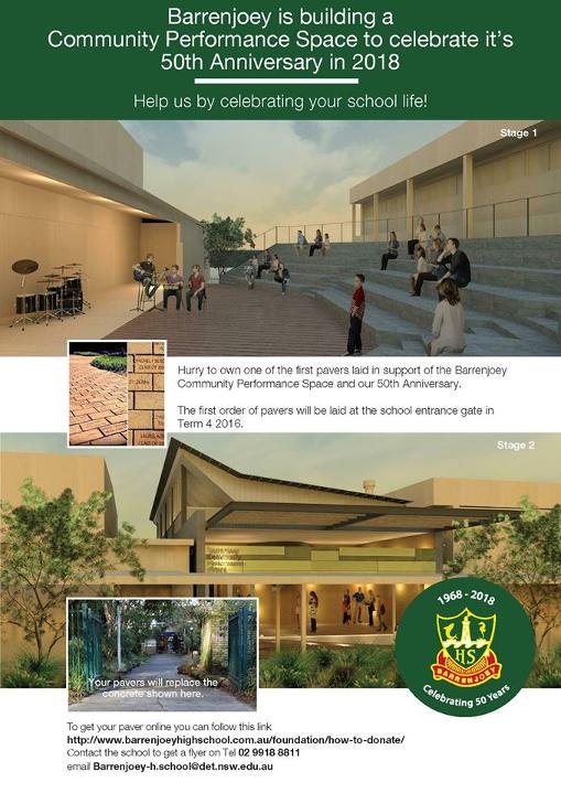 Please view the plan on the school website. Tax deductible donations can be made to our Building Fund via the Treasury at Barrenjoey High School.