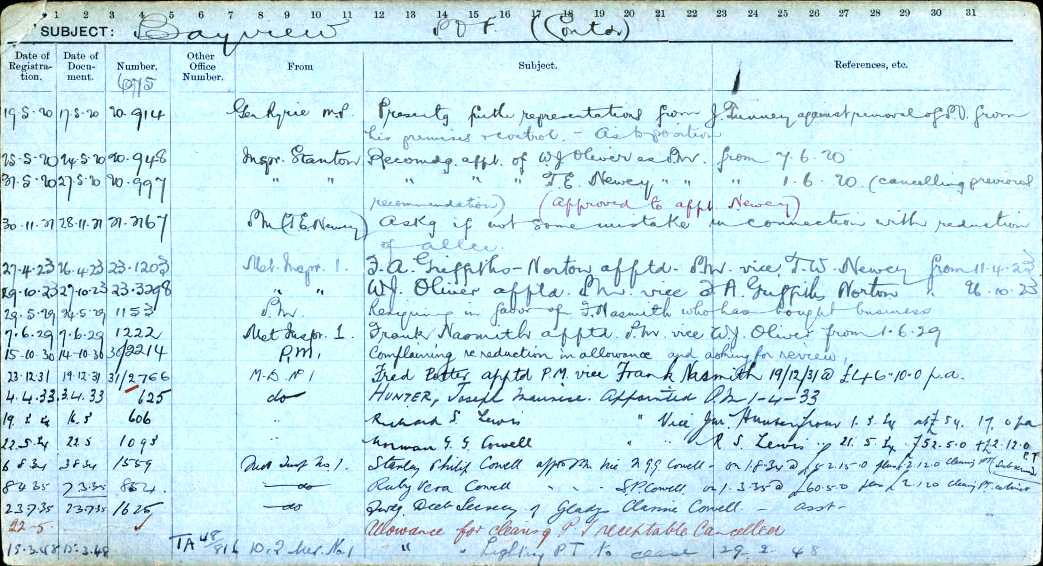 National Archives of Australia records show T E Newey was approved to take over the Post Master position from June 1st 1920: