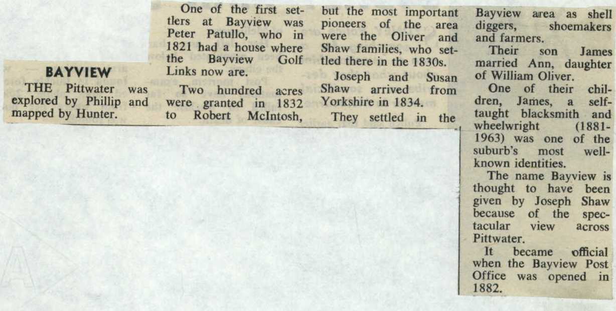 Bayview history extract - clipping per The Sun Feb., 26th 1975