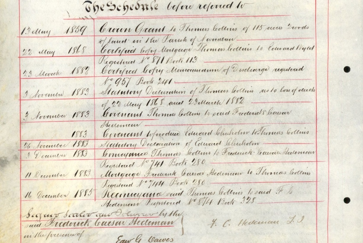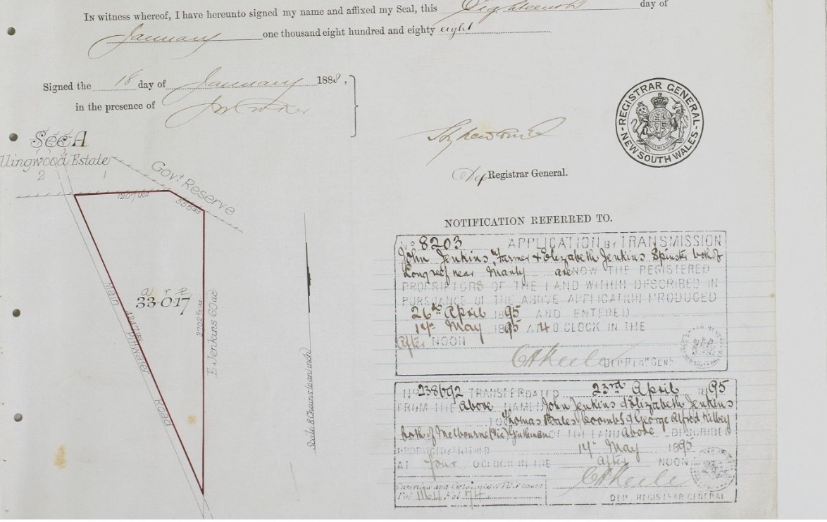 The lands adjoining these were owned by John Thomas Hewitt, who was also bringing his land holdings under the Real Property Act: