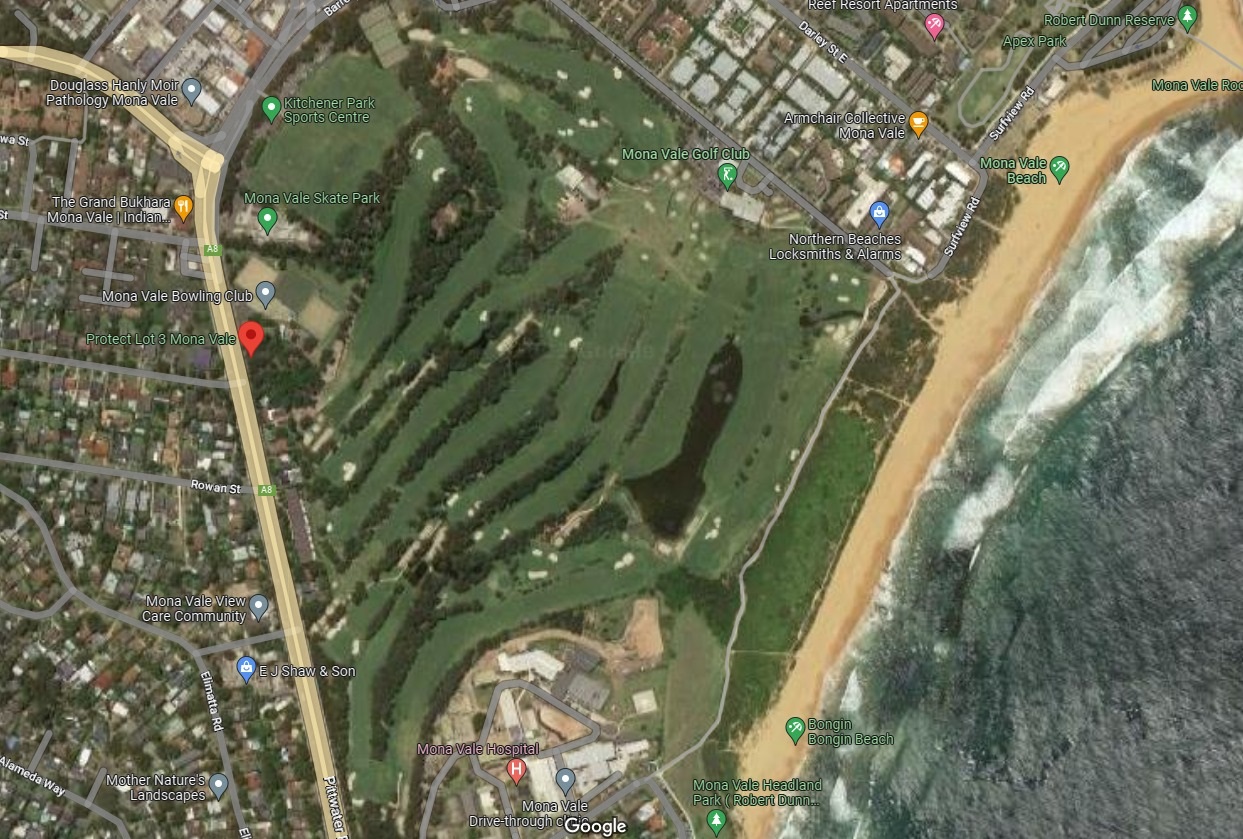 Clearly one of the most human modified landscapes in Mona Vale, this area is now called 'Kitchener Park' and 'Beeby Park', and comprises the Mona Vale golf course as well as the parking lot where land had once been set aside for a cemetery and the field where cricket is played during Summer, football during Winter, and has a skate park and bowling club at its southern limits.