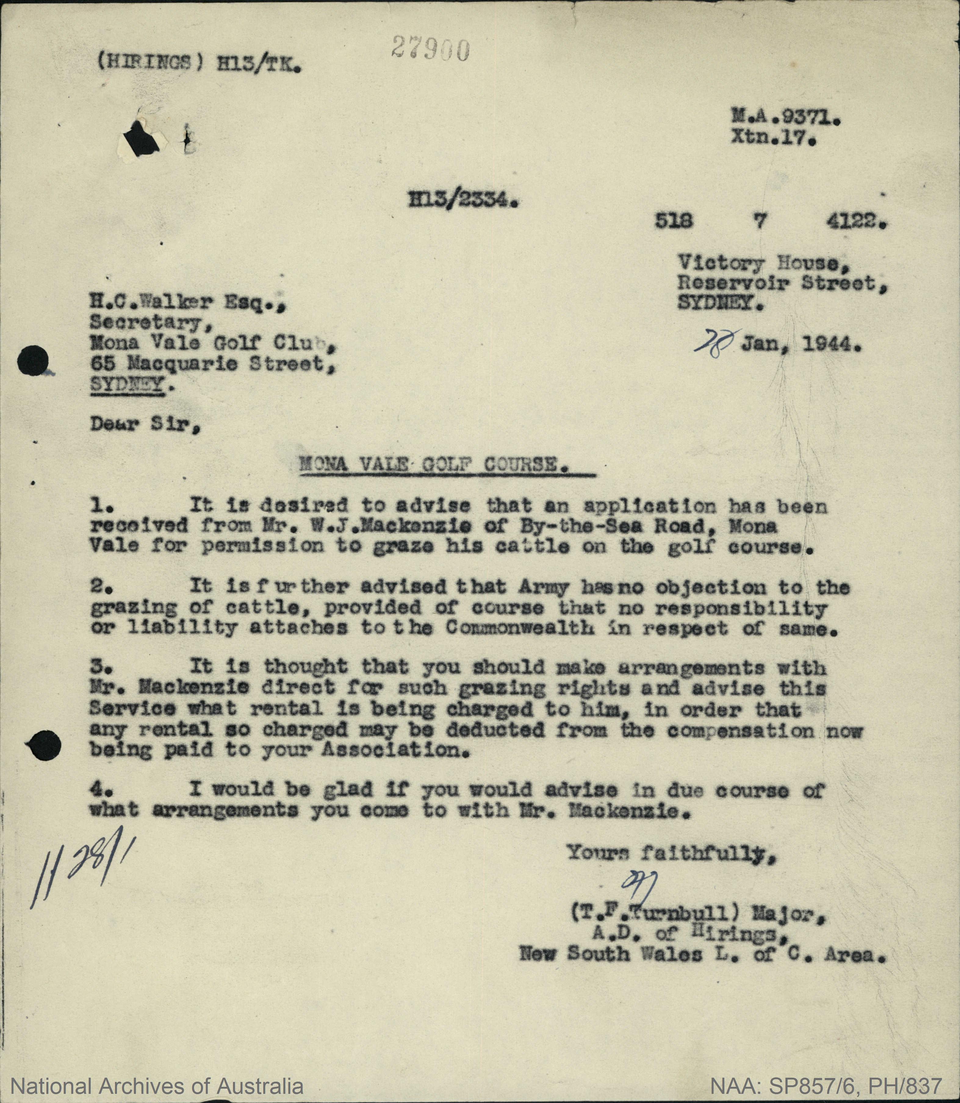 MVGC Rehabilitation by Army map dated 28th of August 1944, courtesy National Archives of Australia - this shows the areas that were then underwater or swampy and the areas that were scrub, along with where the tank trap had been built alongside the beach