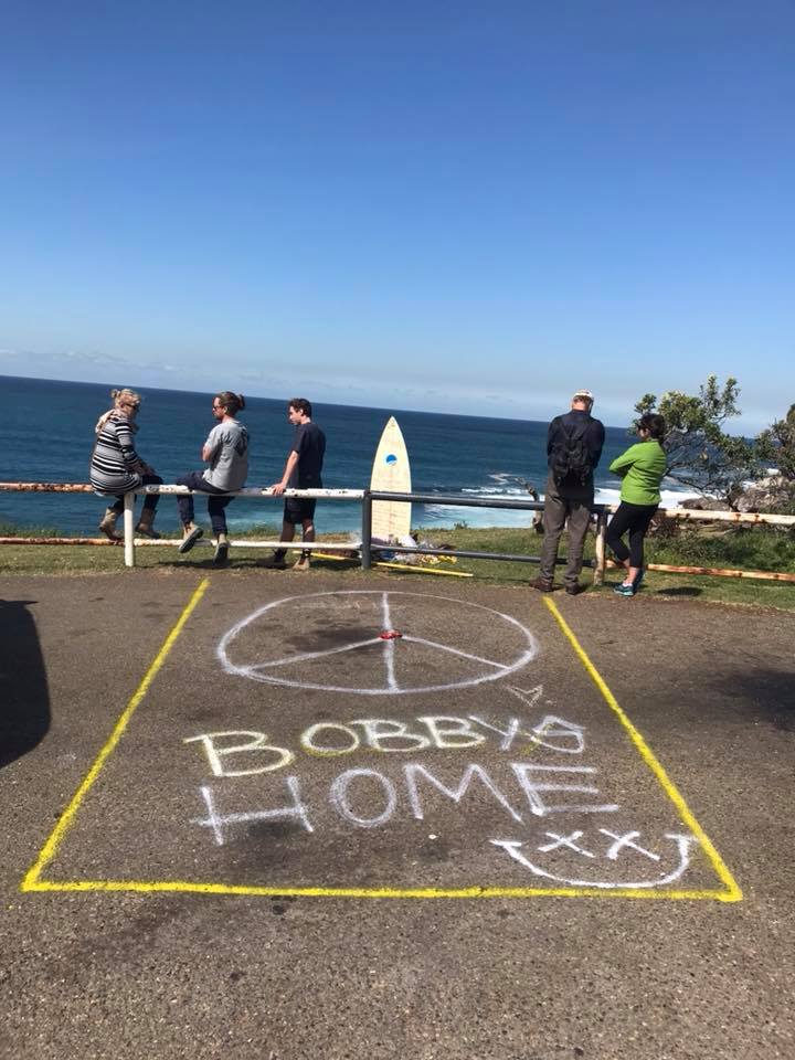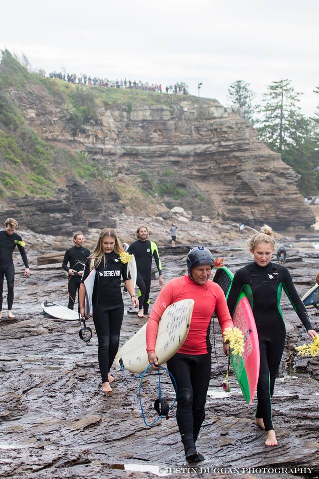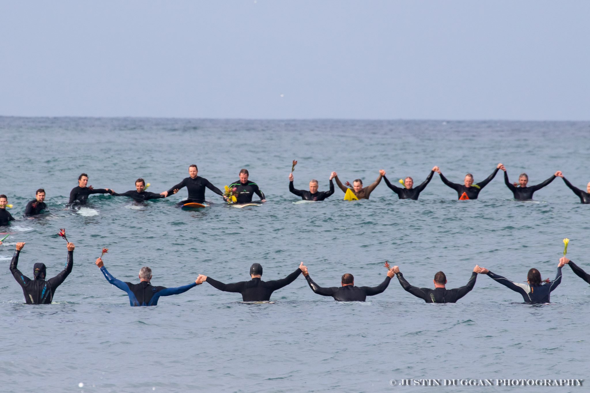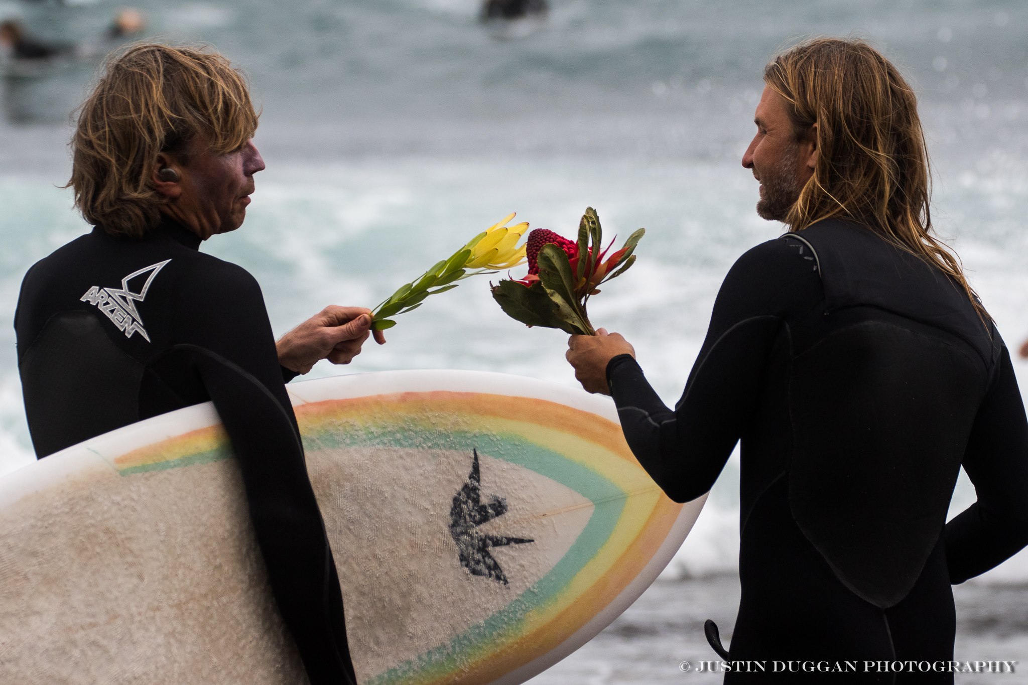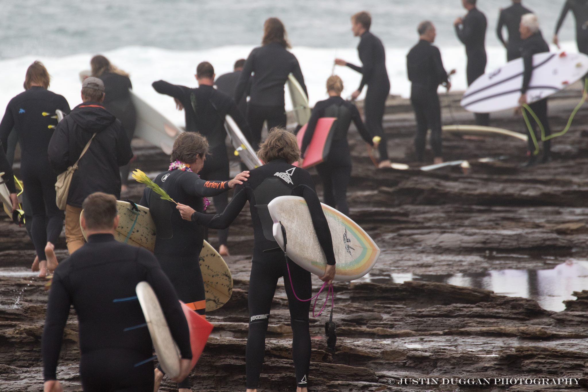 Looking over the headland on Friday seeing the circle form of surfers unite, hold hands and honor their mate , it was an incredible spectacle of kinship,love and fellowship.