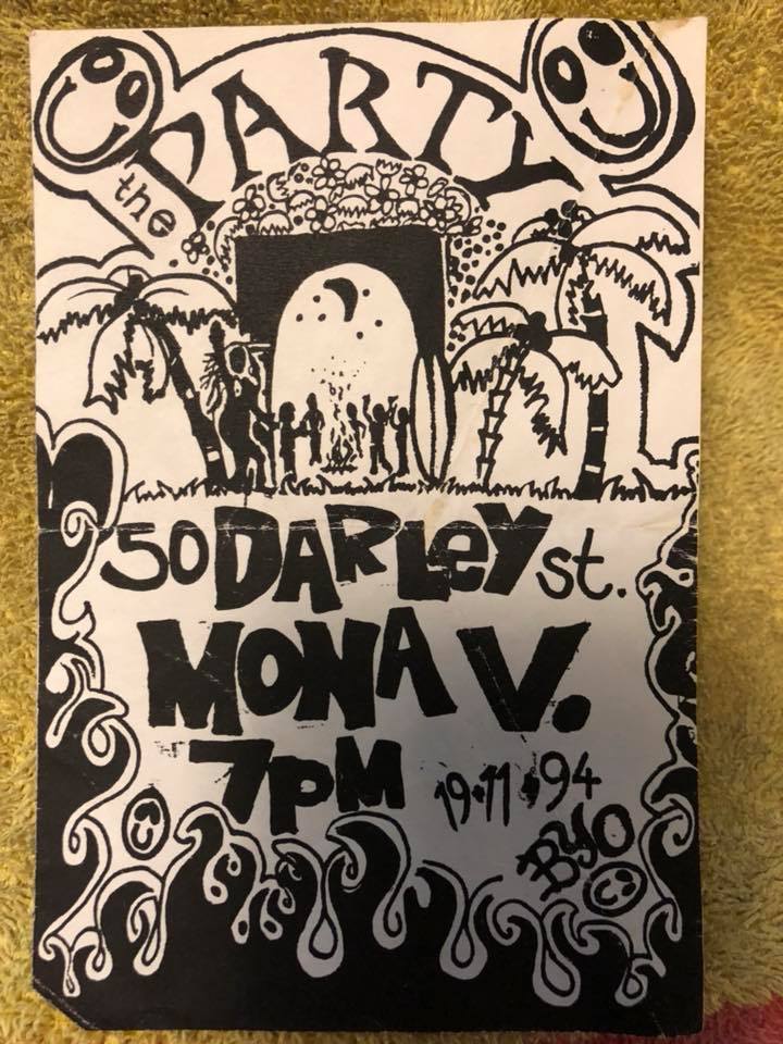 That was the first party we held. Martin Pell did the artwork and Neil Berrell drove us up and down Pittwater Rd until we handed about 500 of them out. Thankfully it was well before social media.