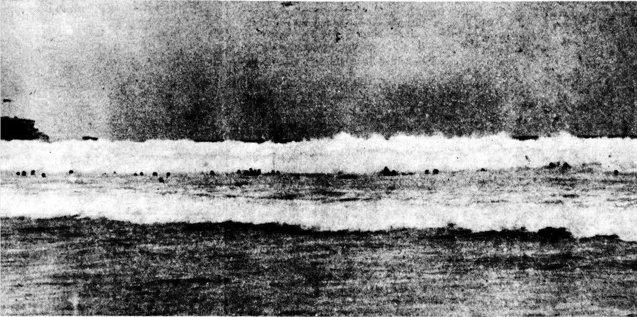 Willing hands ashore had taken charge of the reels, but sometimes without understanding the signals. Aubrey Laidlaw, beach inspector, set them right. Each beltman made three or four trips into the surf, Assisting a victim to the shallows then returning for others.