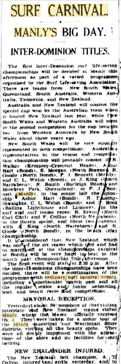 A fortnight later the first of two Inter-Dominion surf carnivals took place: