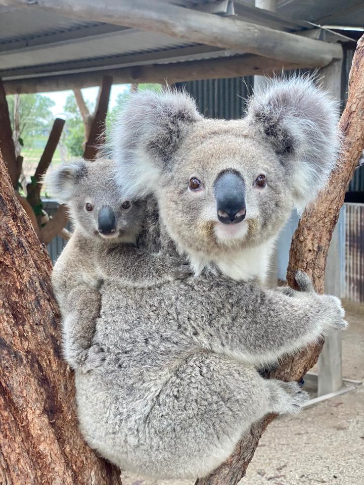 Left: ''Fitzy'' on march 5th and Right: Fitzy is bigger now and on mums back, April 3rd, 2020 - photos courtesy Hunter Valley Zoo, from Facebook post