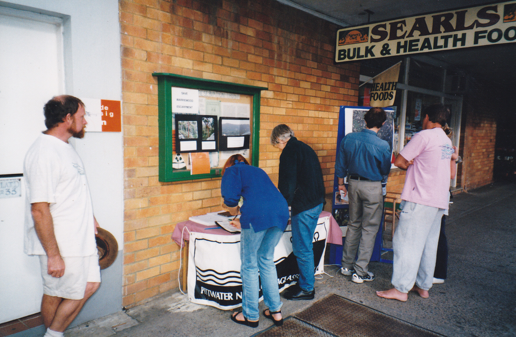 The campaign went into high gear with distribution of leaflets throughout nearby suburbs, information stalls in the local shopping centres, lobbying of Pittwater Councillors, the NSW Department of Planning, John Brogden, our local state member at that time, and collecting signatures on a petition. Jim Revitt took charge of writing the newsletters rallying Pittwater residents to the cause. We formed teams of “walkers” and distributed them throughout the local suburbs.