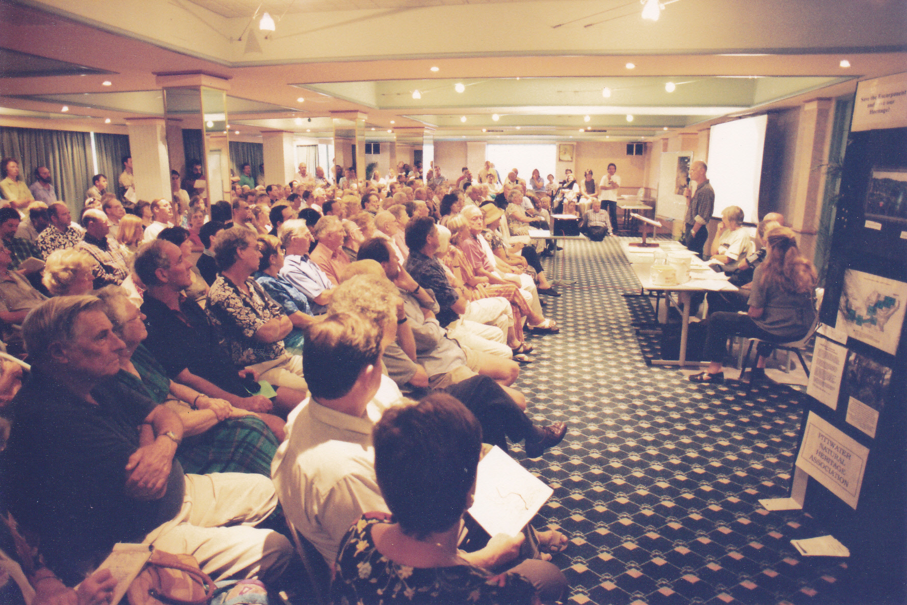 The Pittwater Escarpment Committee’s public meeting at Pittwater RSL, 2 February 2000. Photo D Palmer