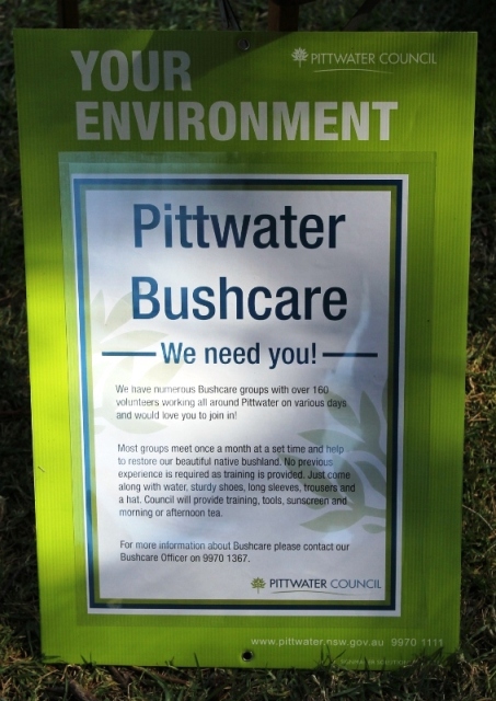 The Careel Creek bushcare group meets on the fourth Saturday morning of each month from 8.30 to about 11.30. Contact Karin Nippard, Northern Beaches Council Bushland Management Officer, on 0417 040 945 to find where the group will work each month.