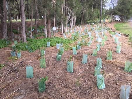 On Saturday June 27, 2015 volunteers helping the Pittwater Natural Heritage Association, in conjunction with Council, at a Community Planting Day were finishing planting out an area at the north end of Careel Bay playing fields beside the dog exercise area and on to the corner of Etival street.