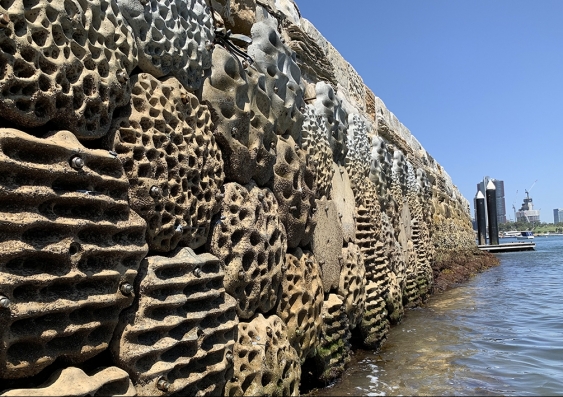 A sea wall with added textures that serve as refuges for intertidal organisms. Picture: UNSW