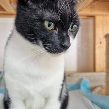 Pollo is a super handsome very chilled boy. He is very gentle and affectionate. He is very comfortable around other cats and is happy to be left alone for longer periods. He came from a deceased estate with Marco. Pollo might be Dad, though we are not sure. Pollo is very possessed about food and will attempt to steal food, even from plastic containers! Pollo has a short coat and weighs 4.3kg. All our cats come desexed, wormed, F3 vaccinated, FIV/FeLV tested if over 6 months old and microchipped. His adoption fee is $220.