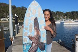 The Flesh-footed Shearwater surfboard artwork will be a core feature of her upcoming exhibition at Amy and Matt Young's The Studio in the Careel Bay Marina.