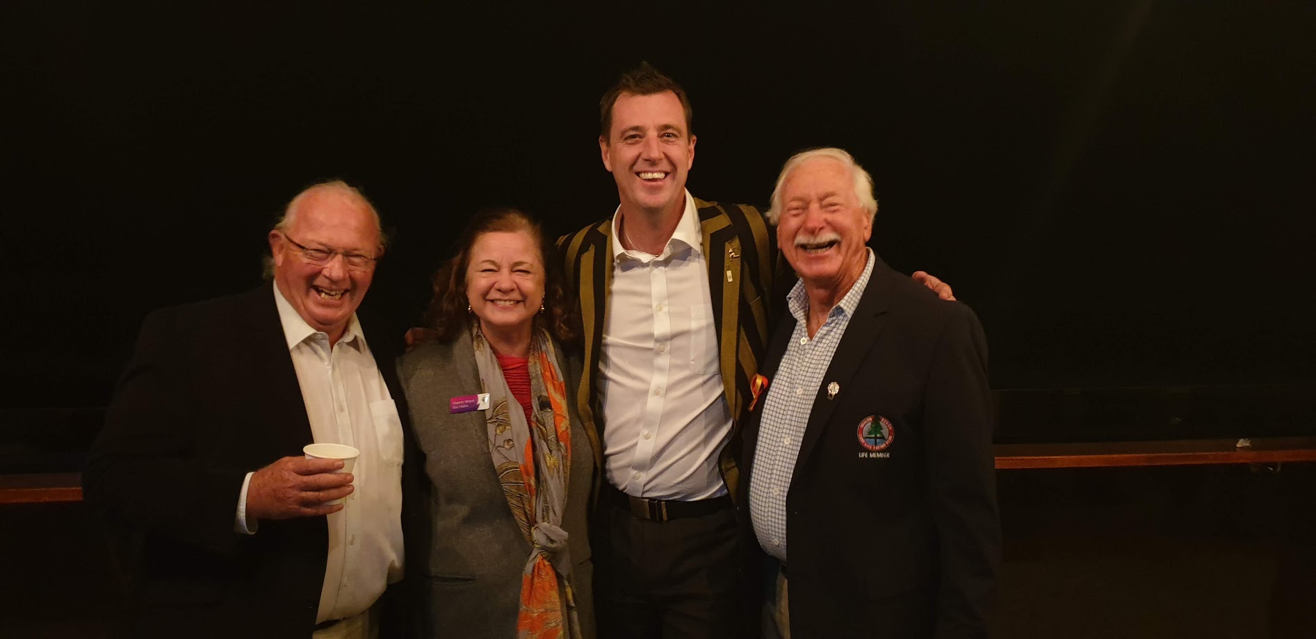 Mayor Regan and Councillors Ian White and Sue Heins, Deputy Mayor at Avalon Beach SLSC on Friday evening as part of the club's 'Club of the Year' Celebrations, pictured here with one of the AVSLSC Life Members, Roger Sayers