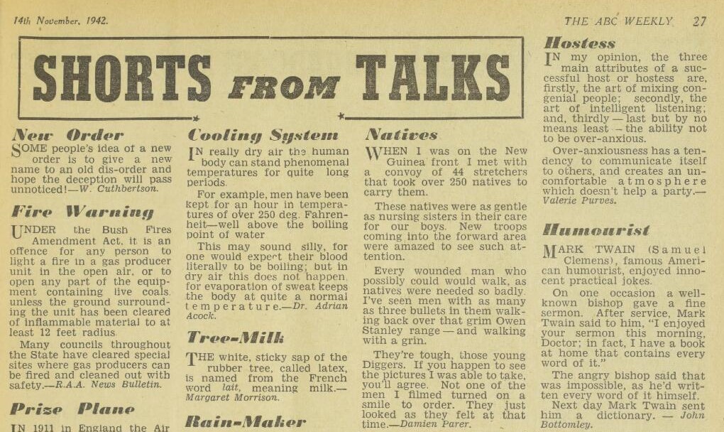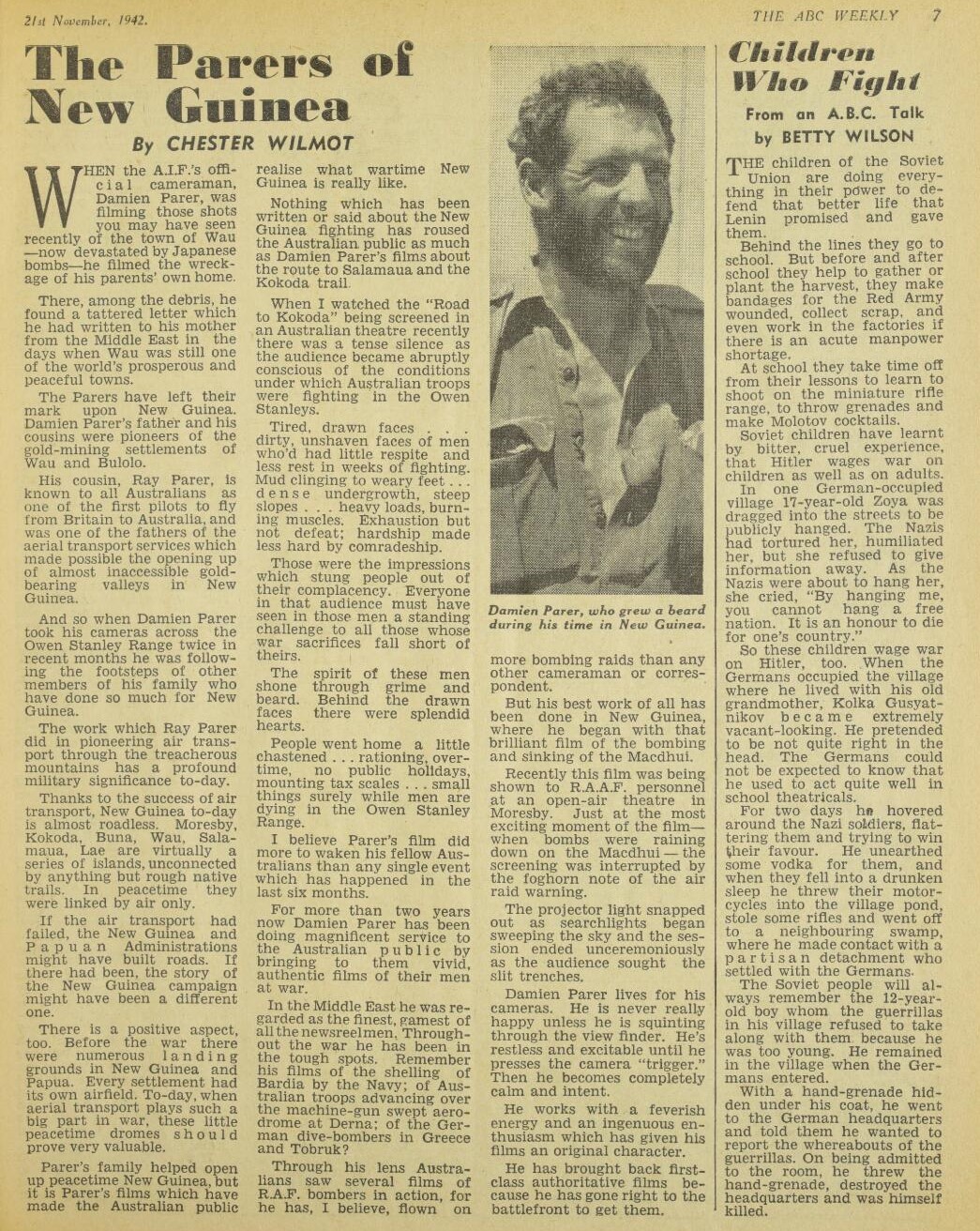 Australian Broadcasting Commission. (Vol. 4 No. 47 (21 November 1942). The Parers of New Guinea, ABC weekly Retrieved from http://nla.gov.au/nla.obj-1329715521