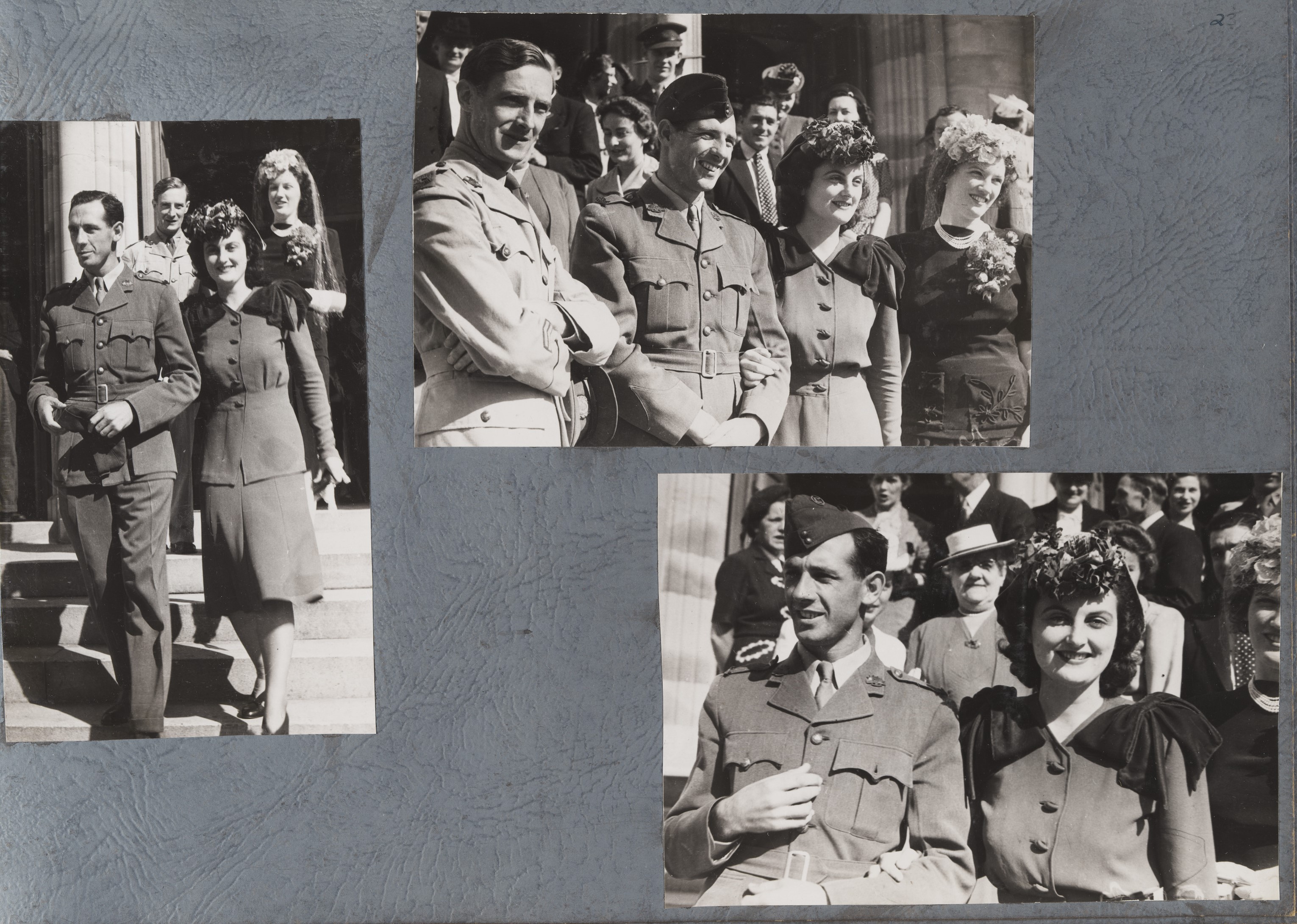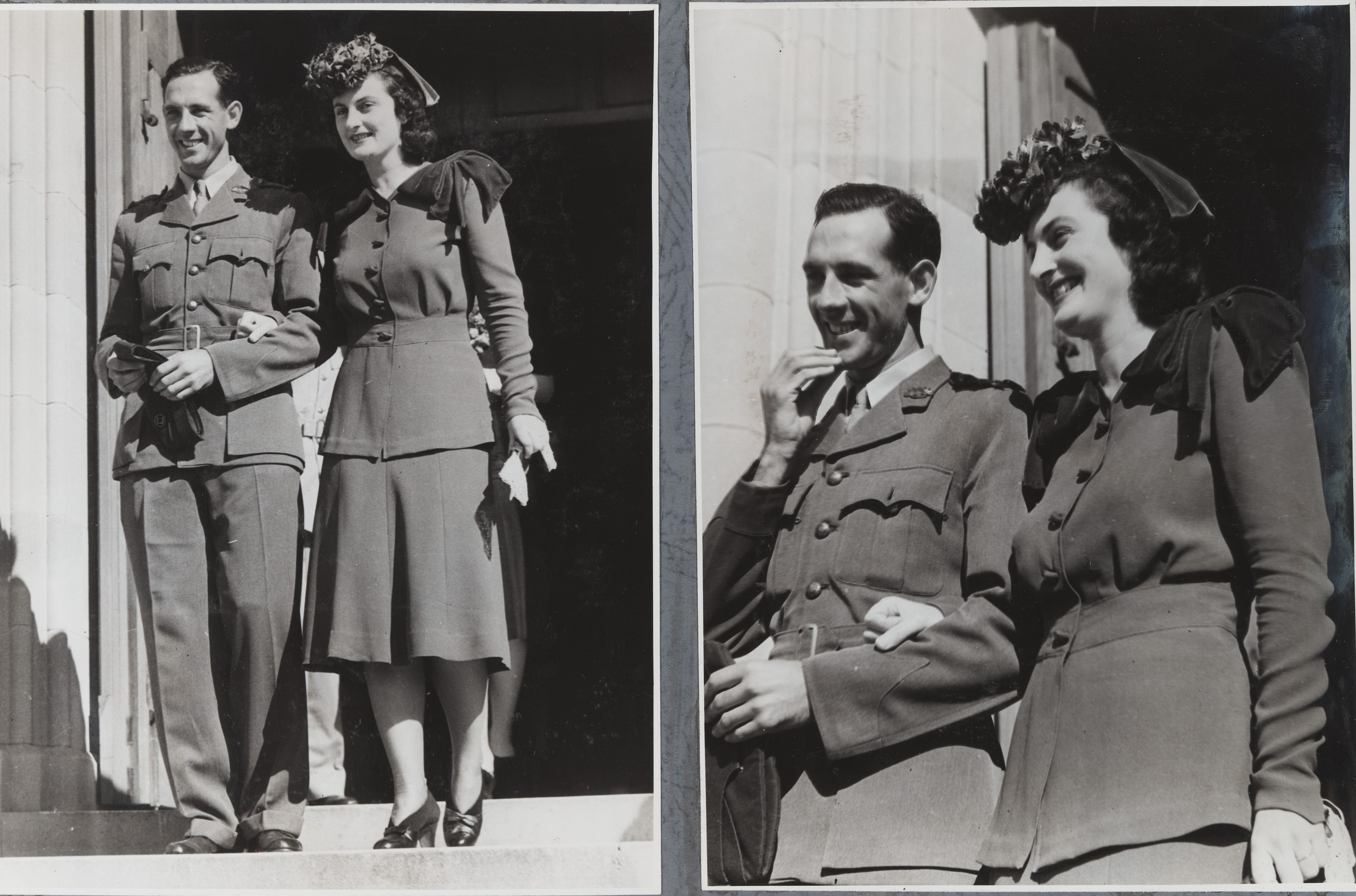Above and below from: 'Album of photographs which include portraits of Parer as a boy; his wedding to Elizabeth Marie Cotter 23rd March 1944 and unofficial war photographs. Numerous portraits of Damien Parer', courtesy State Library of NSW. Below: Parer at the camera with Stan Tolhurst and George Hughes shooting This Place Australia. Caption from McDonald, N. Damien Parer's War, 2004, p.37