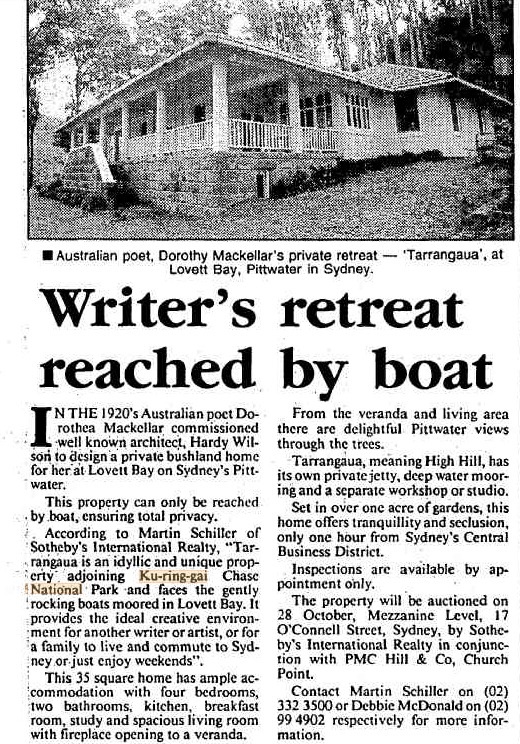 As we head into the final week of the Federal Election of 2022, and voting day this coming Saturday May 21st, as well as our usual practice to remind youngsters that the annual Dorothea Mackellar Poetry Competition is on again this year, with a closing date of June 30th (visit: https://dorothea.com.au/), a few glimmers into her life and her time here at her home at Lovett Bay is one means of celebrating her legacy.
