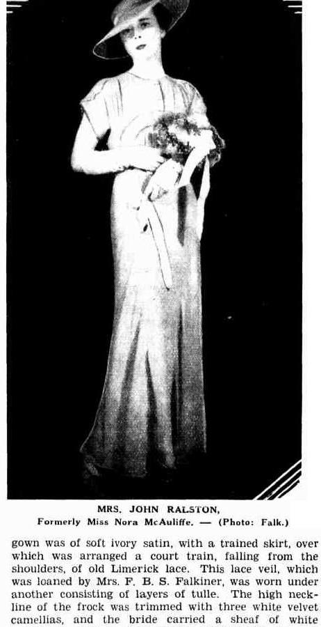 From Left.-Mrs. Alrema Samuels and Miss Norah Mc Auliffe. SYDNEY TOPICS – photos by S J Hood. (1930, January 11). The Australasian(Melbourne, Vic. : 1864 - 1946), p. 61 Edition: METROPOLITAN EDITION. Retrieved from http://nla.gov.au/nla.news-article141425116