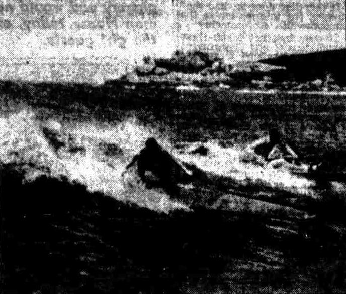 IN a letter to Harry M. Hay, Australia’s foremost swimming and, surf coach, Tommy Walker, one-time surfboard champion at Manly (N.S.W.), writes: 'I saw an article by you in 'The Referee' re surfboards. so enclose a photo of myself and surfboard taken in 1909 at Manly. This board I bought at Waikiki Beach, Hawaii, for two dollars, when I called there aboard the 'Poltolock.' I won my first surfboard shooting competition at Freshwater carnival back in 1911,and that wasn't yesterday. Regards.'