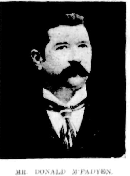 Mr. Donald M'Fadyen, who has been appointed manager of the Fresh Food and Ice Co., Ltd., in succession to Mr. Lance, was born at Morpeth on the Hunter River (N.S;W.), in July, 1863, and consequently is now close on 39 years of age. He came to Sydney 15 years later, and entered into the services of his uncle, Mr. J. R. M'Fadyen, who was then carrying on business In Sussex-street as a produce merchant. In 1881, three years after his arrival in Sydney, he joined the old South Coast and West Camden Co. (now known as the Farmers' Co-operative Co., Ltd.) as a junior clerk, and by degrees worked his way up to his present position as manager of the company.