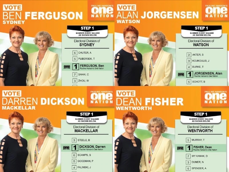 Image: Kate McCulloch appears beside Pauline Hanson on material for several of the party's candidates, including that for Mackellar.(Pauline Hanson's One Nation)