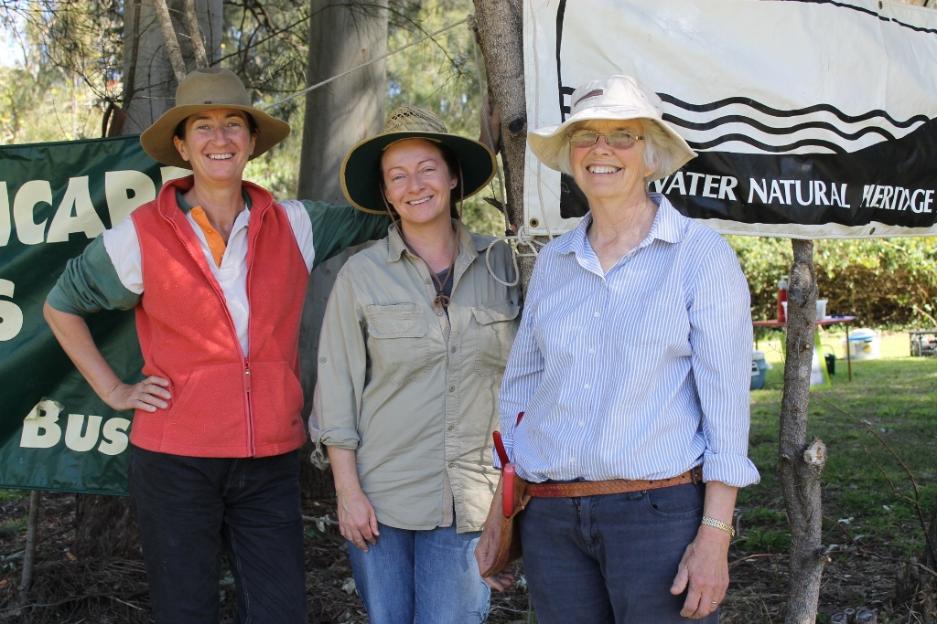 Pam Bateman, Noxious Weed Officer with Council (2013), Helena Dewis, Bushcare Officer, Marita Macrae, Pittwater Natural Heritage Association. Picture by A J Guesdon, 2013 - Asparagus Fern Out Day At Careel Bay.