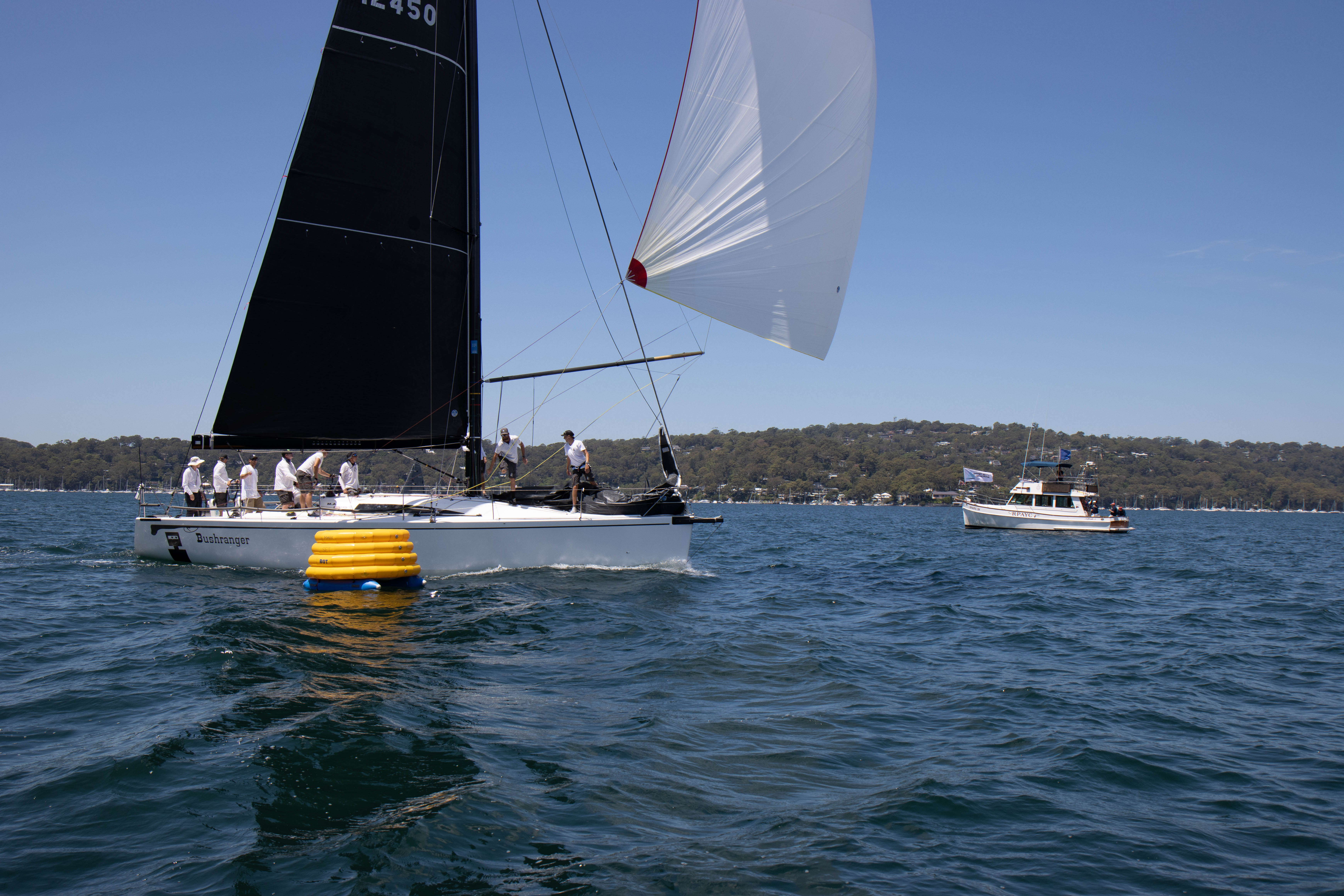Today, Bushranger won both races, the first from Keiran Mulcahy’s King 40, Soozal and Bob Cox’s DK46, Nine Dragons, from Middle Harbour Yacht Club. In the second race, Bushranger defeated the same two boats, but in the reverse order.