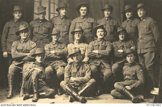 Studio portrait of 159 Trooper William (Bill) Tough. Studio portrait of 159 Trooper William (Bill) Tough. and Interior of dugout belonging to 2555 Warrant Officer William Alfred Tough, 10th Depot, Australian Army Service Corps at Gallipoli, and Group studio portrait of soldiers from the 10th Australian Depot Unit of Supply. Second row, seated third from left is 2555 Warrant Officer (WO) William (Bill) Tough.