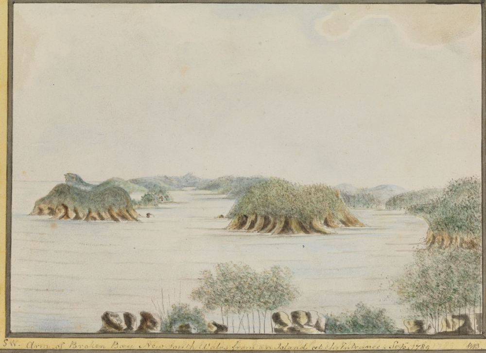 Figure 1 `View in Broken Bay New South Wales. March 1788' Courtesy Mitchell Library, Image No.: a3461013. The earliest depiction of Pittwater.