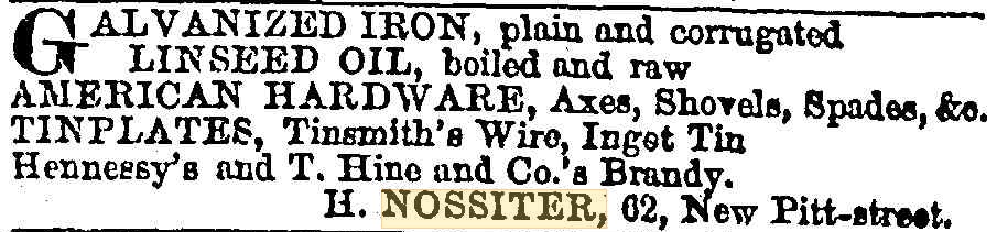 NOSSITER—July 22, St. Leonards, Mrs. H. Nossiter, son. Family Notices (1877, August 24). The Sydney Morning Herald (NSW : 1842 - 1954), p. 8. Retrieved from http://nla.gov.au/nla.news-article13398973