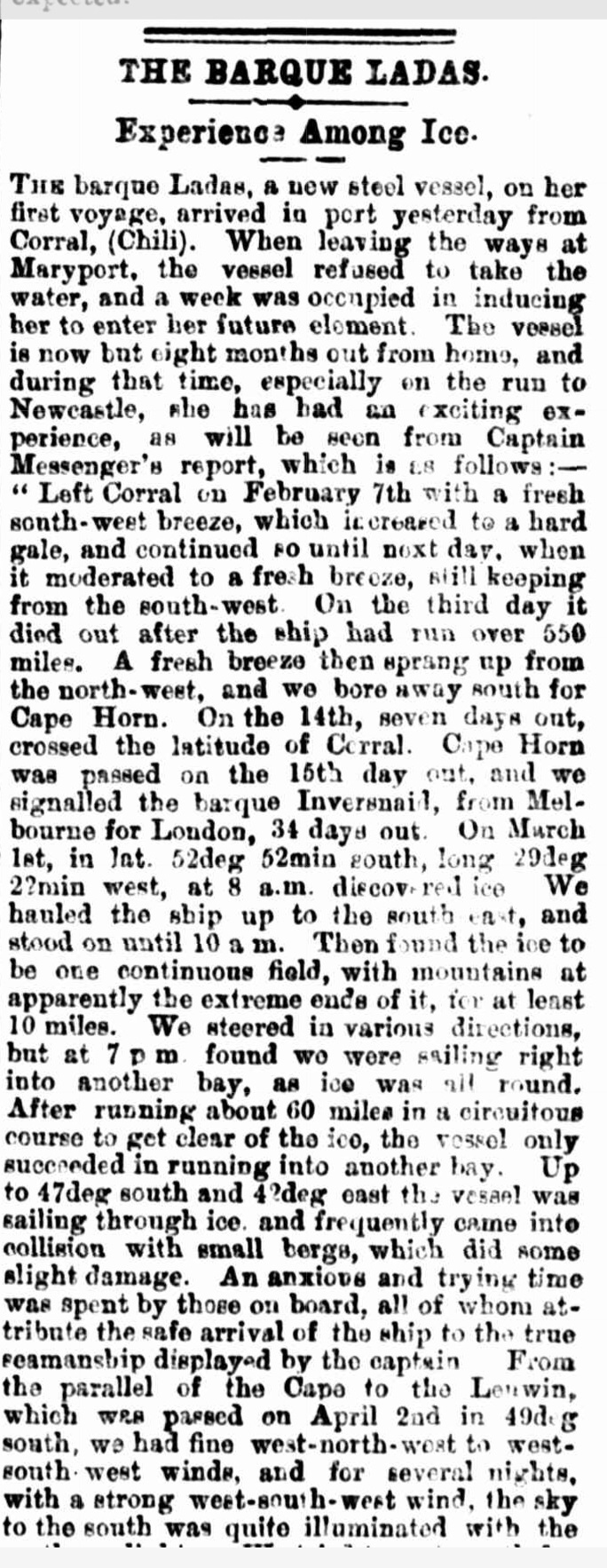 Sailing Notes. (1886, May 29). The Sydney Mail and New South Wales Advertiser (NSW : 1871 - 1912), p. 1125. Retrieved from http://nla.gov.au/nla.news-article162812977