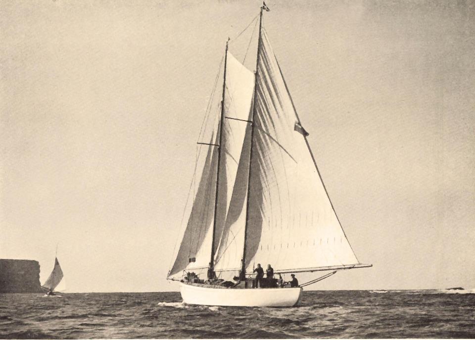 The race was sailed in a light wind, which gave the yawl very little chance ; she nevertheless stuck well to her rival,but was eventually beaten by about 3 minutes over her time allowance of 3 1/2 minutes. Sirocco's sailing in this race was exceptionally good, and she took second prize by time. The two six-tonners were beaten off and were not timed. The result of these contests was that a private match between the two boats was arranged to be sailed over an ocean course — to Eliot Island and back — under cruising canvas. This, of course, was an advantage to the yawl, who had never yet met her opponent with anything like a similar sail spread. Sao, expecting to meet Assegai, joined in the match, receiving an hour as time allowance. The breeze was not strong, and the sea was smooth. Electra won by half-an-hour from Waitani, Sao being 19 minute outside her time. The time for the whole course by the winner was about 7 hours and 16 minutes — not bad work for about 24 miles to windward and back. This was the last race between these two boats, and on the whole they left off on tolerably level terms, Waitangi having had the best of it three times to Electra' s twice. ...