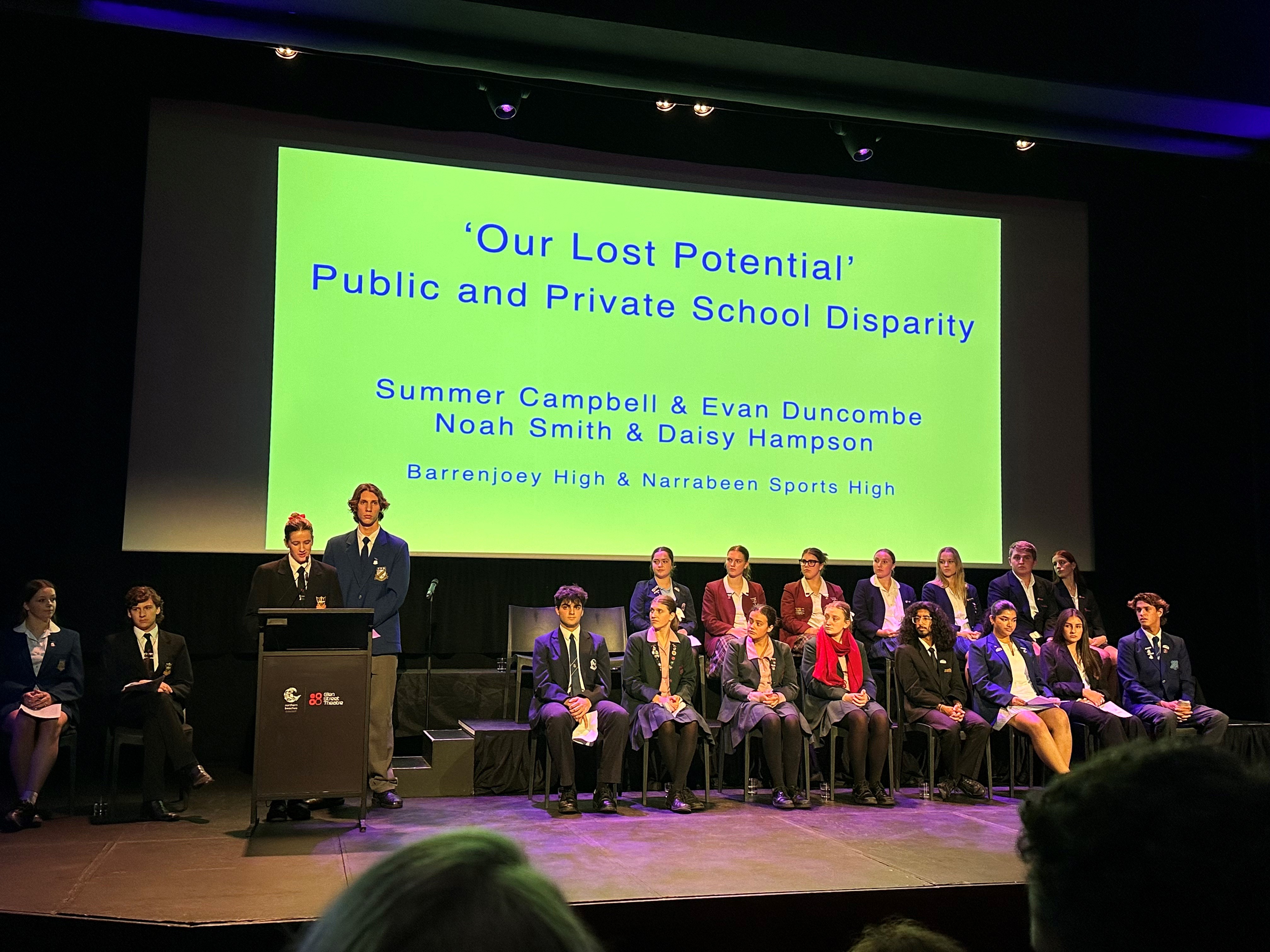 Pittwater was well-represented with Barrenjoey High School captain Summer Campbell and Narrabeen’s Evan Duncombe highlighting the problem of public and private school funding. Summer pointed to a report that revealed Sydney private school Cranbrook invested more in a new pool and expanded fitness and drama facilities in 2021 than governments spent on 2,549 public schools combined. Meanwhile, 2023 data showed Australian private schools received an excess of $800 million in funding, while public schools faced a shortfall of $4.5 billion.