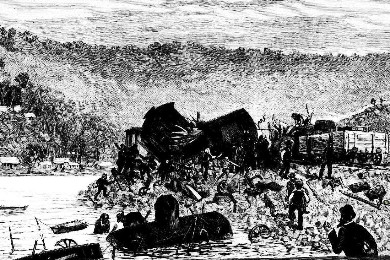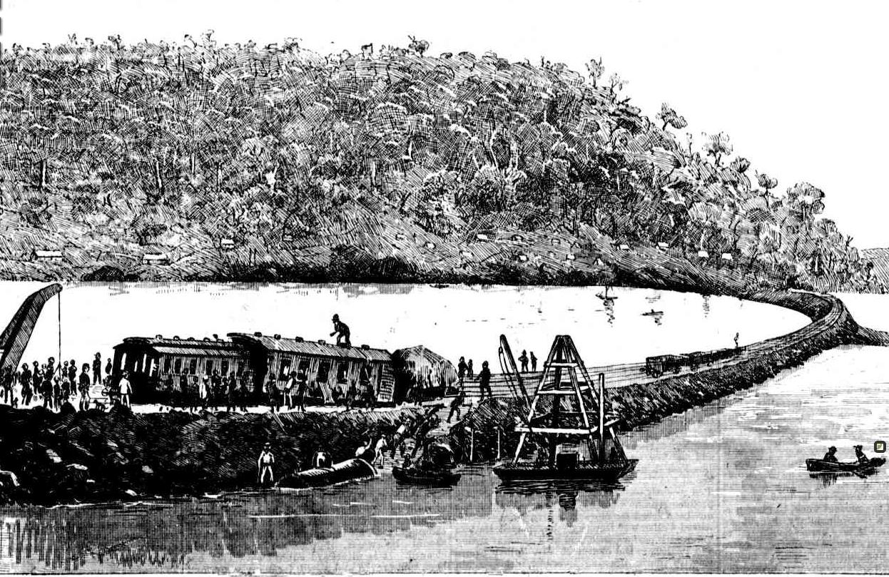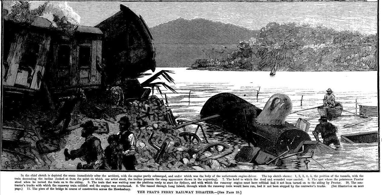 SAD RAILWAY ACCIDENT AT PEATS FERRY, HAWKESBURY RIVER. (1887, July 15). Illustrated Sydney News (NSW : 1881 - 1894), p. 8. Retrieved from http://nla.gov.au/nla.news-article63620688