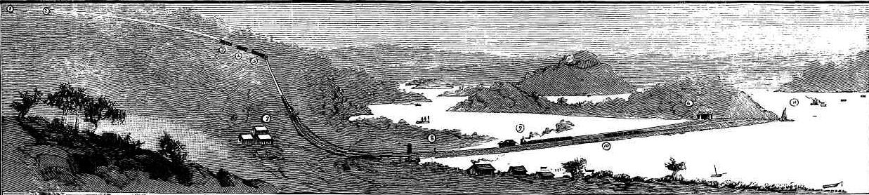 At Long Island the visitors were met by Mr. Oscar Schulze, engineer for the Union Bridge Company of New York (who were the successful tenderers for the construction of the Hawkesbury railway bridge), Messrs. Ryland and Morse (contractors for the superstructure), and Mr. Anderson (of Anderson and Barr, contractors for the sub-structure).
