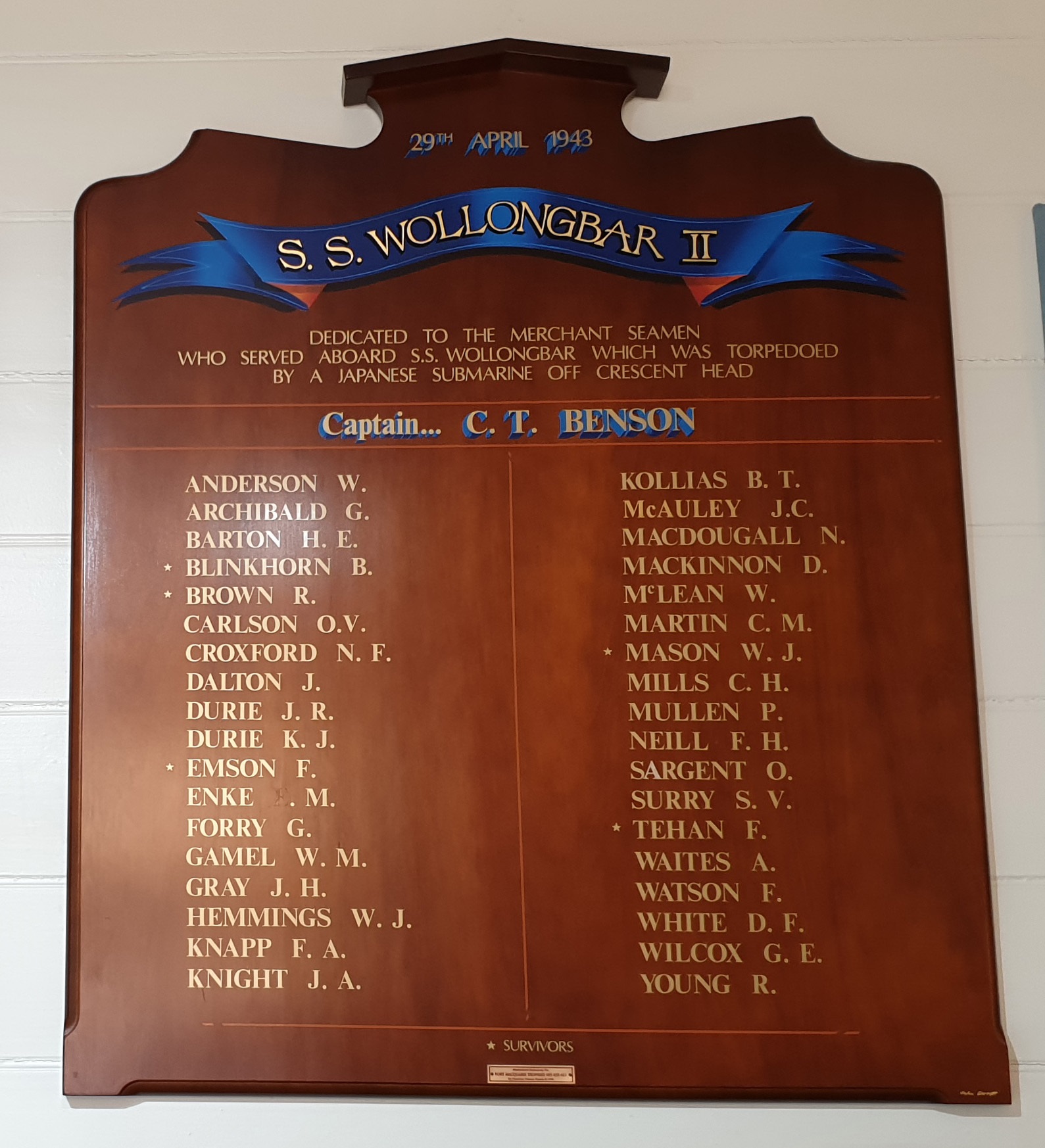 S.S. Wollongbar Sunk By Torpedoes (1945, November 22). Daily Examiner (Grafton, NSW : 1915 - 1954), p. 2. Retrieved from http://nla.gov.au/nla.news-article195748467
