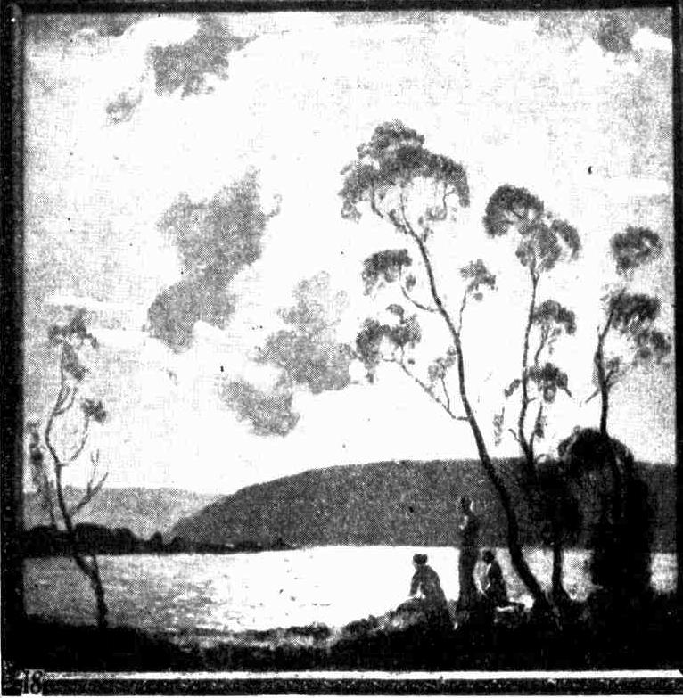 There are some Sydney art-lovers who saw in the first work exhibited at the Art Society's exhibition of 1910 by Mr. Jackson the factors which make for success. His colour sense was unusually good from the outset, and it has since been trained and improved. Rejoicing in the brilliant display of colour harmonies which Nature makes in Australia, Mr. Jackson set himself to reproduce them. His early impressionist landscapes and his bold treatment of the figure in the open air gave a note of gaiety to his exhibits which contrasted agreeably with the graver and often stodgier pictures near by. Colour is, after all, the most important element of a painting. The selective sense is shown in the theme and fundamental training in the daughtsmanship, but neither good drawing nor interesting subject will compensate for lack of beauty in colour. One might grade artists by their ability to render colour in its true tonal values and in its less obvious and vulgar appearances. And one might almost say that if a person is endowed with a fine colour sense all other requirements of artistry will l:e added unto him. Mr. Jackson's progress as an artist is indicated by the increasing subtlety of his handling of paint and his treatment of more difficult aspects of the figure. Figure painting is more exacting than landscape, and less saleable; so that fewer artists attempt it seriously as compared with those who 'go in for' landscape.