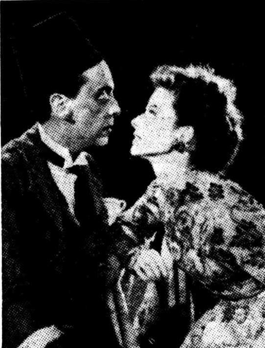 This is often done in the Soviet Union, where this play is very popular, to point an ironical interpretation of the play. According to this interpretation, Katharine does , not become a slave of Petruchib, but, achieving full understanding with him, enters a subtly ironical relationship.The Old Vic would have none of such subtleties, but play the show as a knock down, drag out farce, Katherine Hepburn seems far more comfortable . in this than as Portia, -and Helpmann and the others in the cast give very polished performances. Michael Benthail has used a deal of imagination in the-business introduced and what laughs the play rouses are won by this. This is one of Shakespeare's earliest plays, Written at a stage when he was still infatuated with his gift for words. It is full of tedious witticisms and plays on words. The theme and characterisation, at least as interpreted by' the Old Vic, are so slight as, to fail to compensate for this.