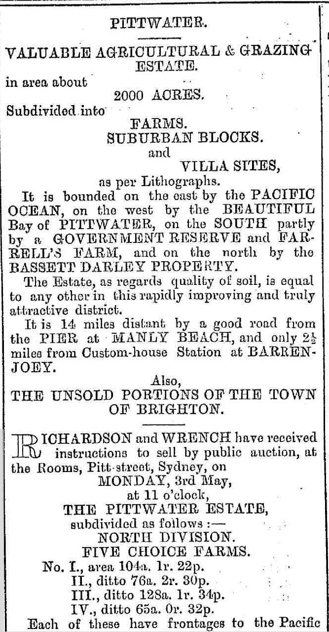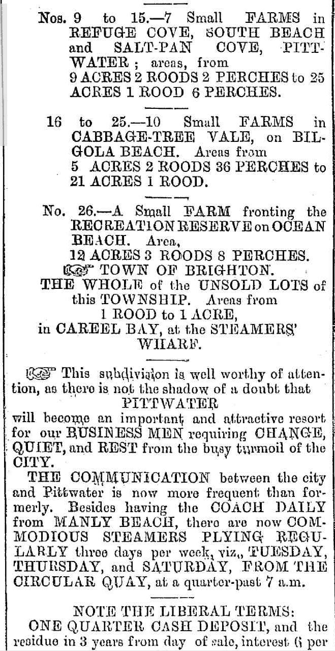 Mr Dalwood soon had the land up for sale as the 'Dalwood Park Estate' and then the 'Three Beaches Estate':