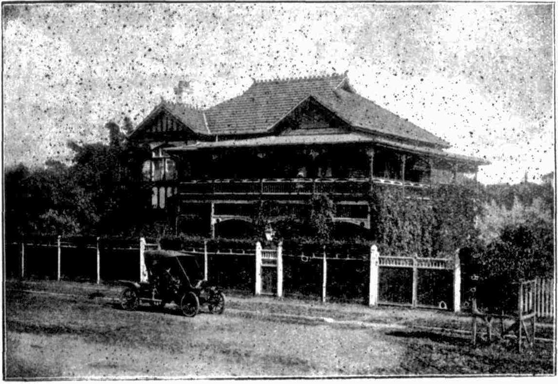 To reach "Hi-Brazil," you must either climb a long flight of steep stone steps, which eventually lead you past the goldfish pond to the main entrance, or take the newly constructed driveway that skirts the house itself, so visitors enter the living-room through the patio.