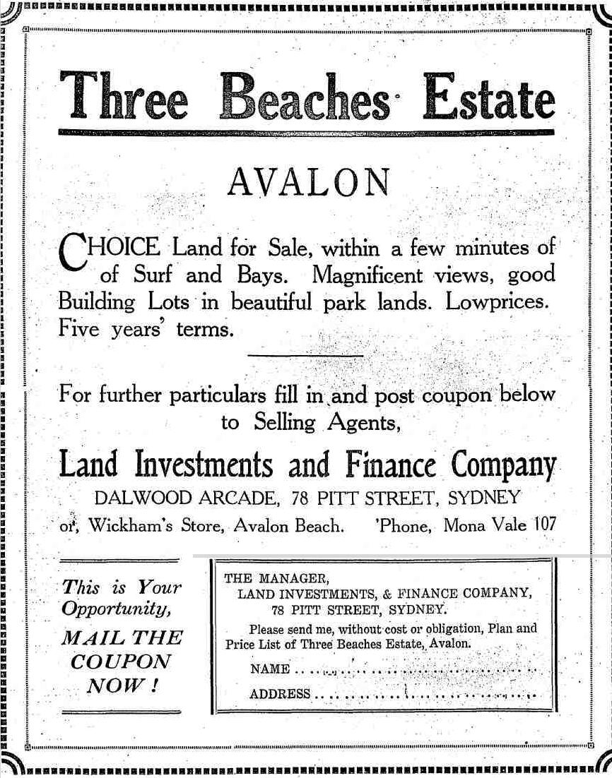 This wasn't the only Avalon Beach land sale going on at that time: