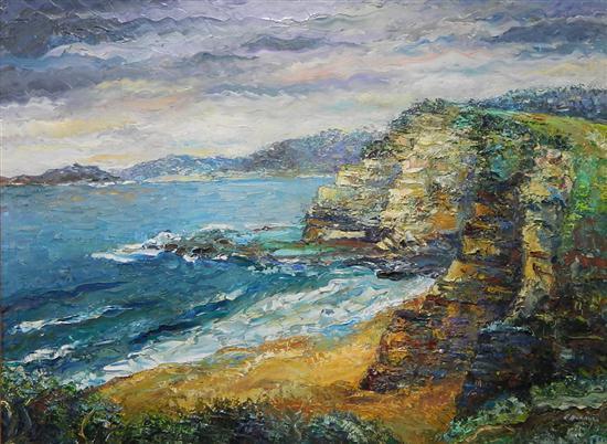 Edward (Ted) Herman (b.1936) Headland, Bungan Beach - Oil on board; 44 x 59 cm.