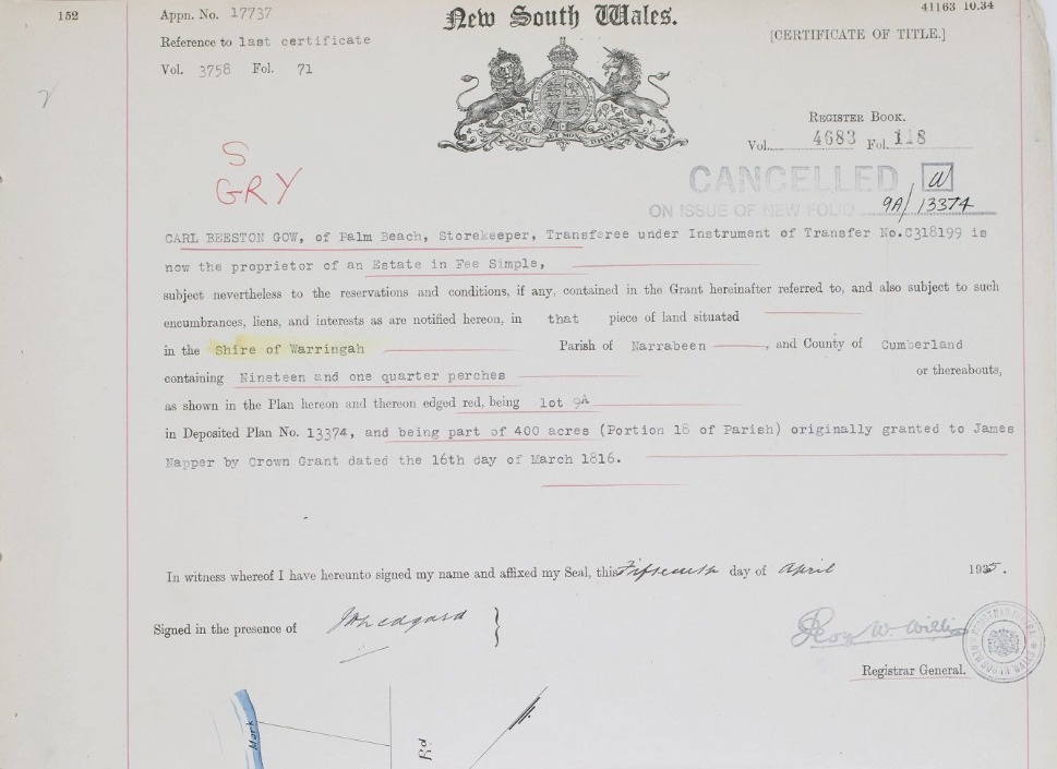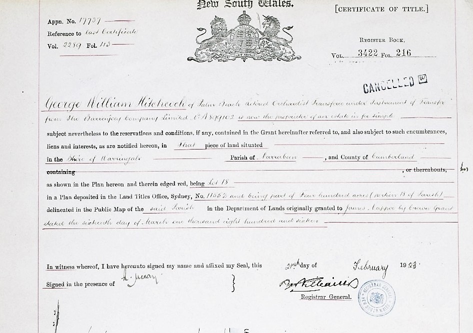 Although the above shows the Warringah Shire Council was calling this area 'Hitchcock Park' by 1933, it wasn't officially gazetted as Hitchcock reserve an area designated for public recreation and registered as such until November 13th, 1942.